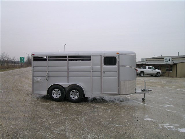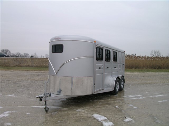 2016 Calico 3 Horse trailer with 4'SW Dress BP, Steel Construction with Wood Floor, 4' Short Wall Dress, 6' Wide, 6'6 Interior Height, 17' Floor Length, 20' Overall Length, Drop Down Feed Windows, Escape Door with Drop Down Feed Window, Full Swing Rear Door, (1) Dome Light In Horse Area, (2) 3500# Axles 6 Bolt Steel Wheels, ST235/80 R16 Tires, Diamond Plate On Nose Of Trailer, Dressing Room Details:, 3 Stack Saddle Rack * Bridle Hooks, (1) Dome Light
