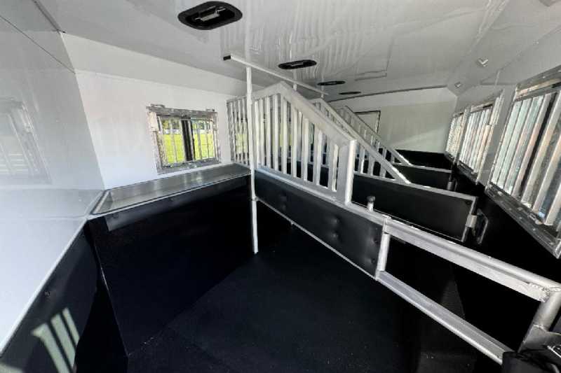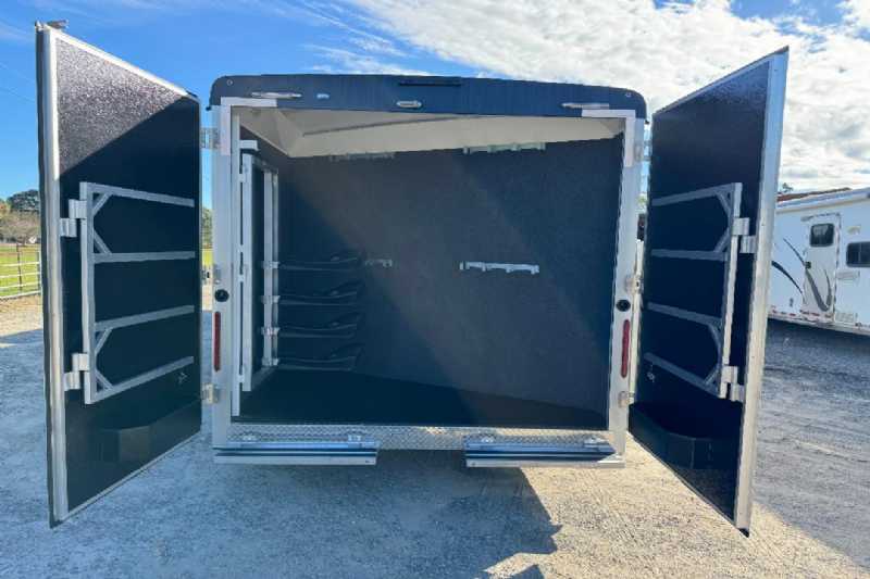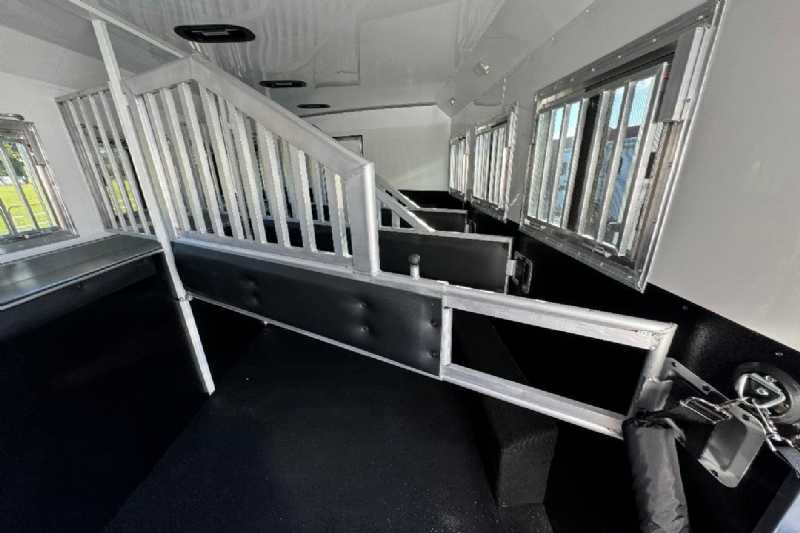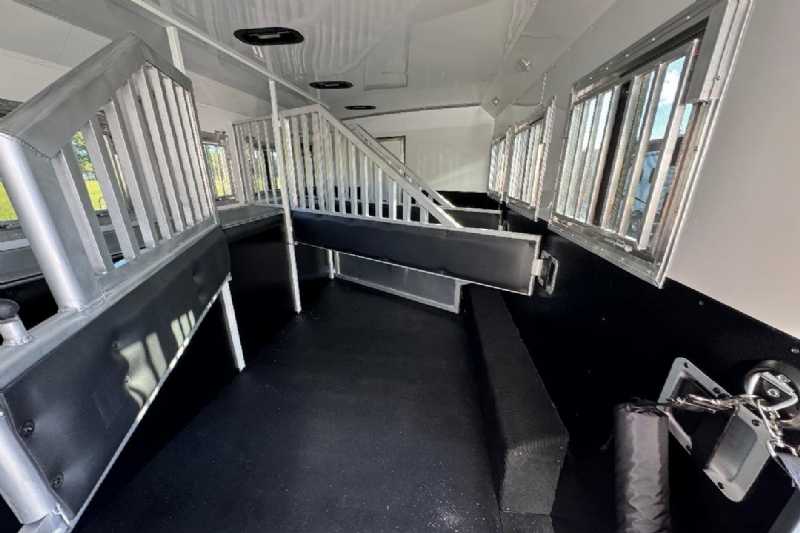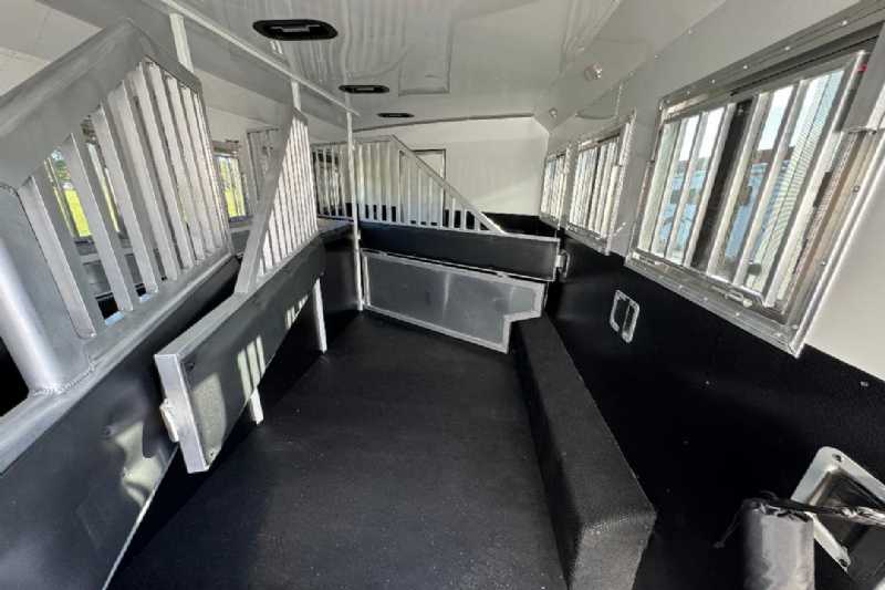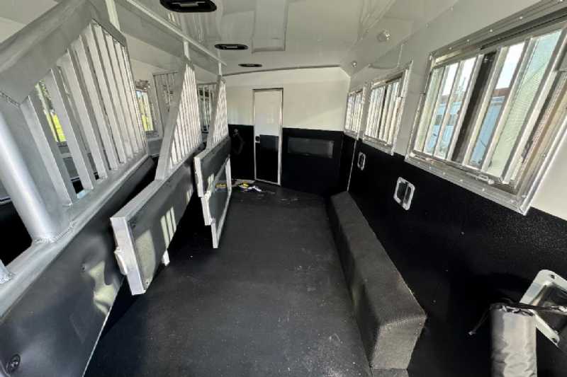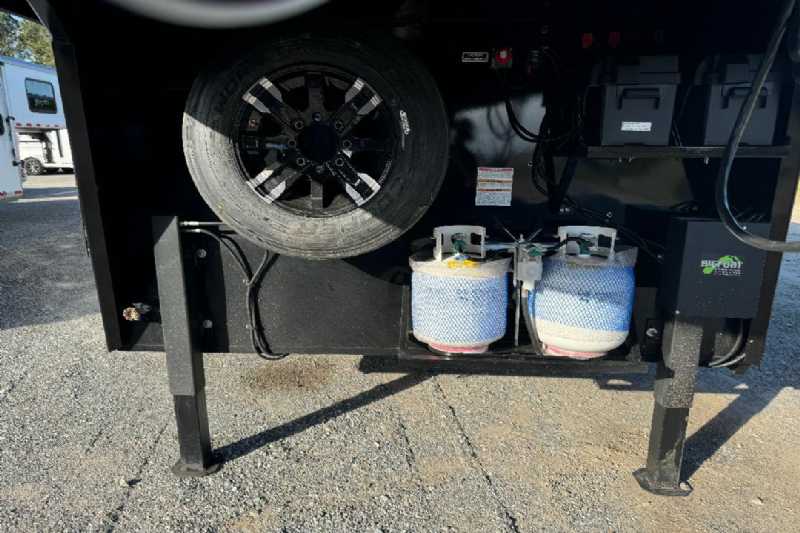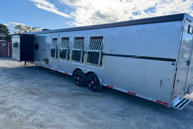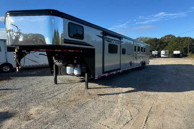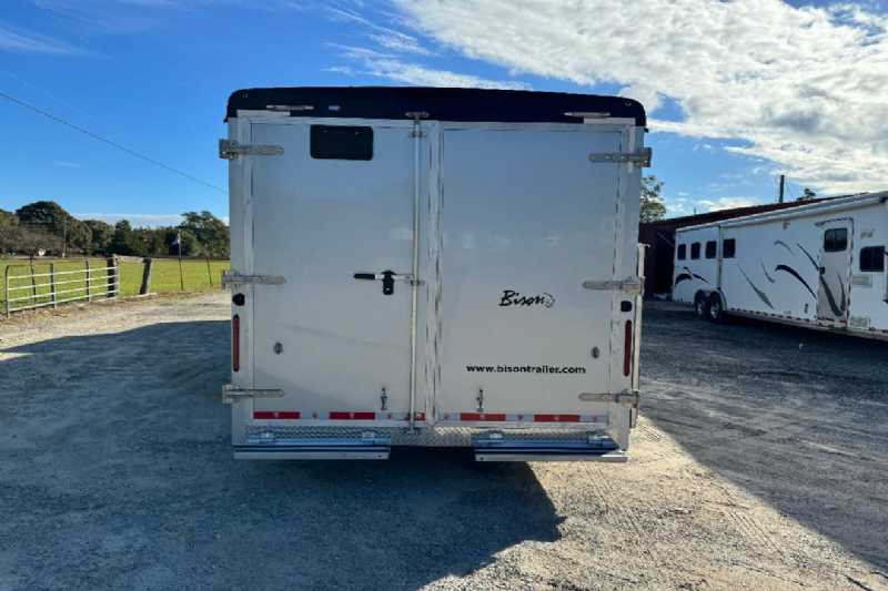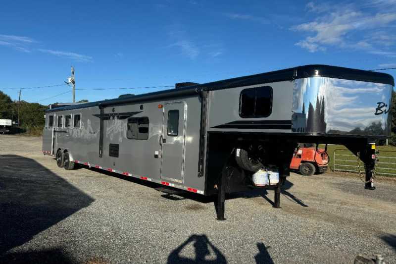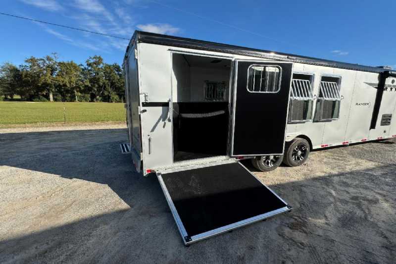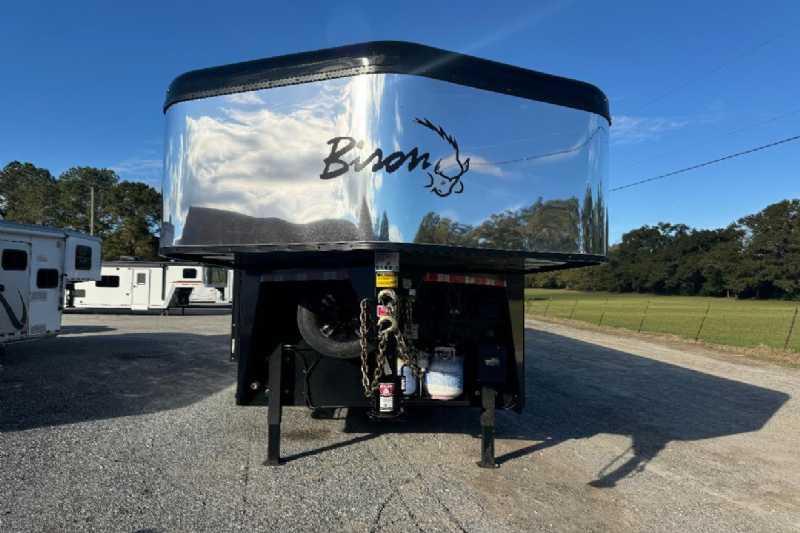 2025 Bison Bison Bison Ranger 8416RSL, Living Quarters Glideout 16' Shortwall 20' Longwall Walk-thru Door Kitchen Refrigerator Microwave Living Area A/C Furnace Radio Antenna Bathroom Bathroom Sink Toilet Shower Plumbing Fresh Water Gray Water Holding Black Water Holding Water Heater Power LP Tank(s) Battery Wired for 110v power Horse Area 4 Horse Mangers Trailer Steel Frame/Aluminum Skin Hydraulic Jack Spare Tire Lifetime Pressure Treated Wood Floor 8000# Axles 17.5-inch Tires Dimensions & Weights Dimensions & Weights are approximate Outside Width: 8' Inside Height: 7'6 (22.5 hands) Box Length: 37' Empty Weight: 13136 lbs. GVWR: 20061 lbs.