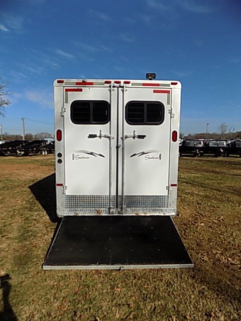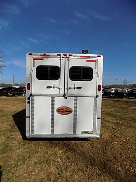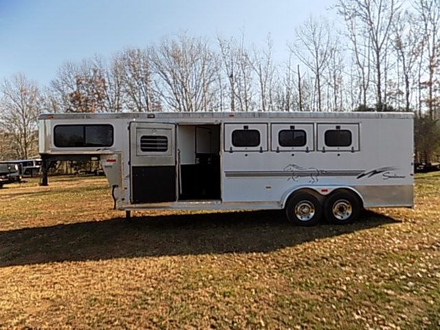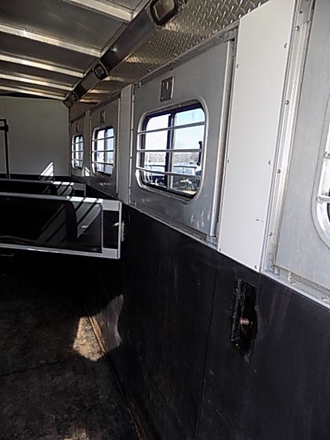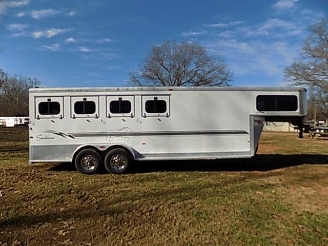 2000 Sundowner Valuelite 4 Horse, 4 Horse Slant Load, 7' Interior Height, 6'6" Interior Width, 22'6" Box, 4' Dressing Room, Walk Thru Door to Horse Area, Steel Frame, Aluminum Floor with Rubber Mats, 8 Drop Down Head Windows (4 Head & 4 Butt Windows), 4 Roof Vents, 5 Interior Lights in Horse Area, 38" Escape Door (Street Side), Double Rear Doors, Rear Ramp, 2 Load Lights, Good Tires (235/85R16) Range G, Spare Tire, Manual Jack, GVWR - 12200, Empty - 6500.