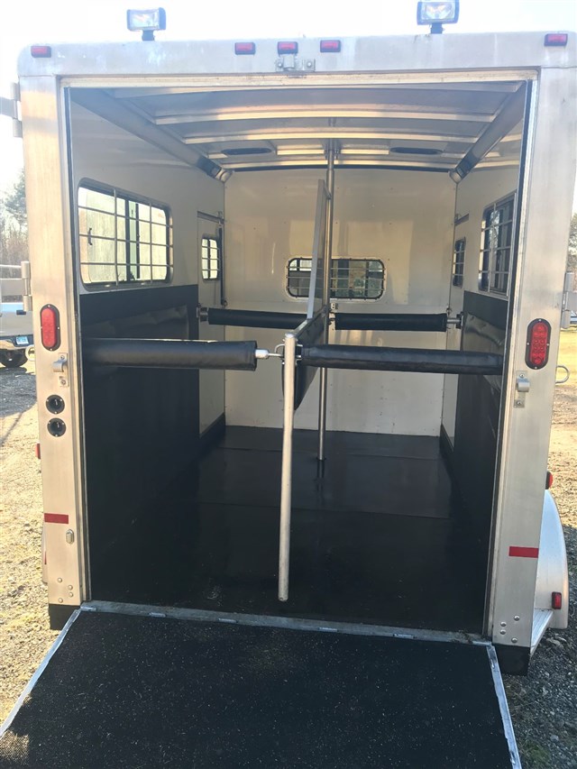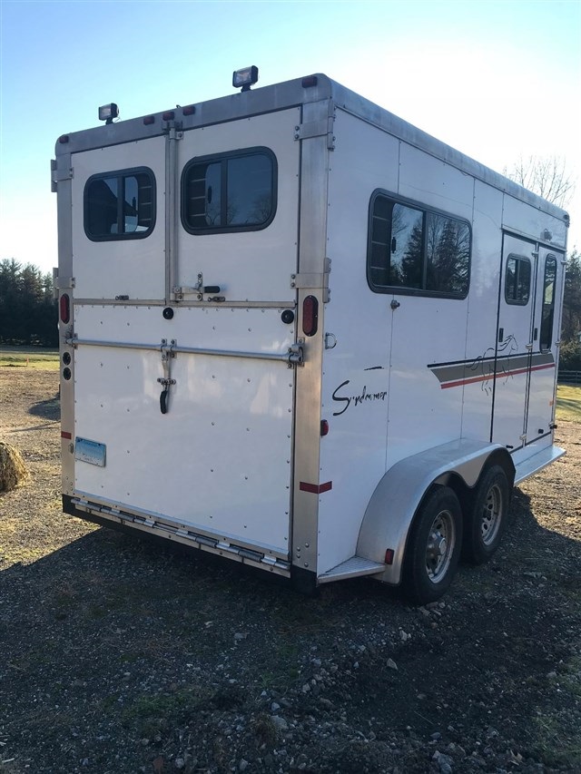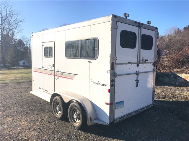 2005 Sundowner 2 horse bumper pull trailer. Clean throughout and well maintained. New this year: tires, wiring, lighting. Everything in working order. Steel frame and aluminum floor. Warmblood size: 7'6" interior height.