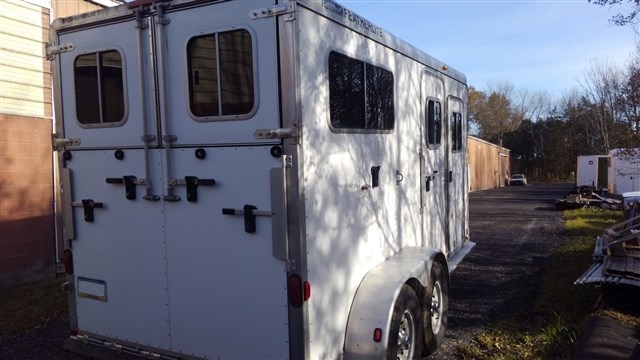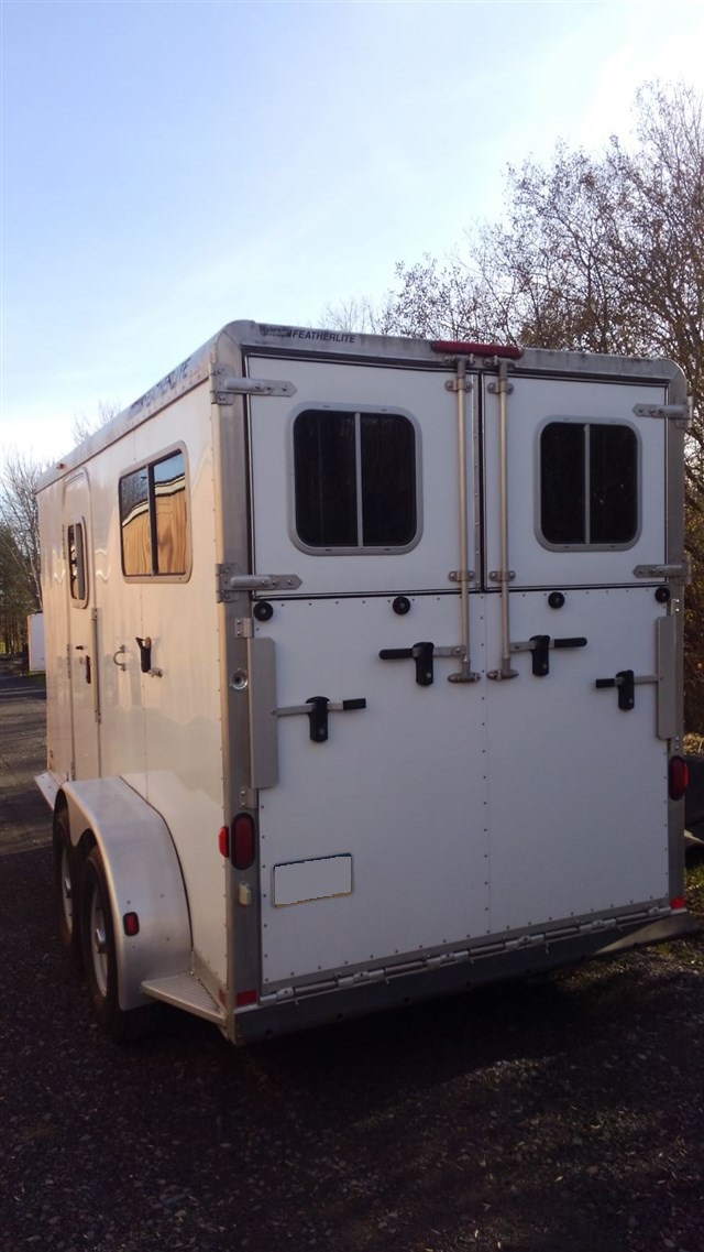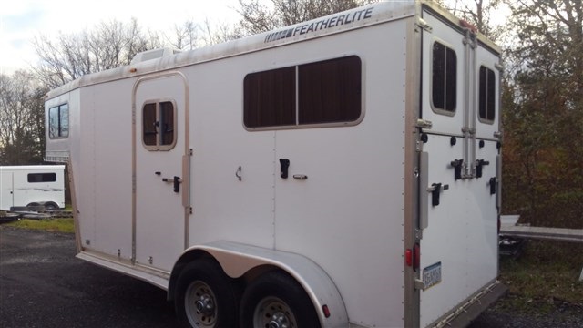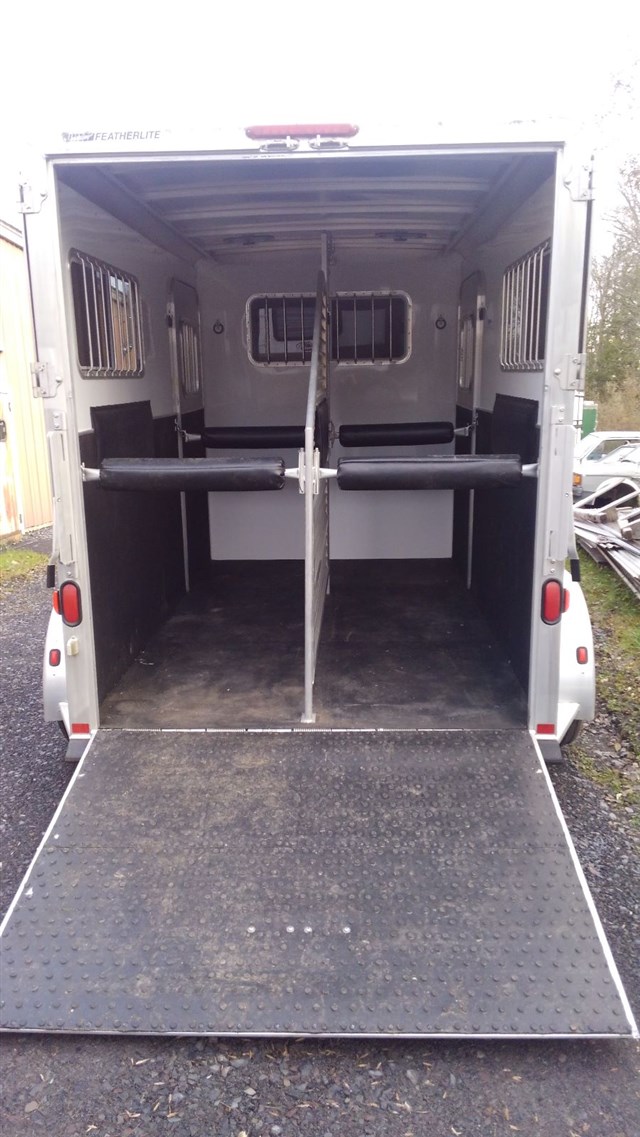 2005 Featherlite Two horse Gooseneck Two Horse Straight load with rear ramp and dressing room. Dressing room has saddle racks, bridles, air conditioning and electrical package. Horse area is 7'6" interior height, rear ramp, large windows, padded butt bars, padded chest bats, full divider. Aluminum construction. Trailer is in excellent condition.