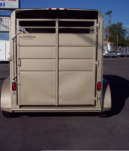 2016 Calico 2-Horse Slant. Specs: 2016 Calico 12'L x 6'W x 6'6"H G.V.W.R. 7,000 lbs (2) 3,500 lb torflex axles with brakes on all 4 wheels electric breakaway spare tire mount dressing room (2) saddle racks bridle hooks headstall and divider (2) dome lights 2' coupler 7 way RV style plug Mats Trailer weight is approximately 2420 lbs