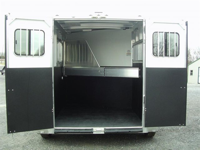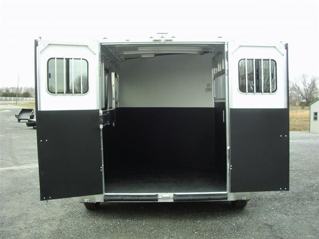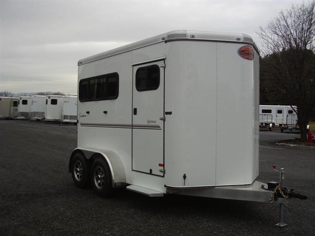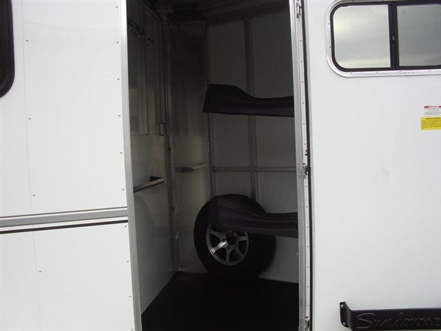 2015 Sundowner 2H BP Sportman Step Up Rear 7'7" T, 6'9" W,LED Loading Light, Drop Down Face Guard, Elec Brakes, 35K Axles, Spare Tire in Dressing Room, 2 Tier Saddle Racks, Blanket Bar,Brush Box, Alum. Wheels. Spare Tire